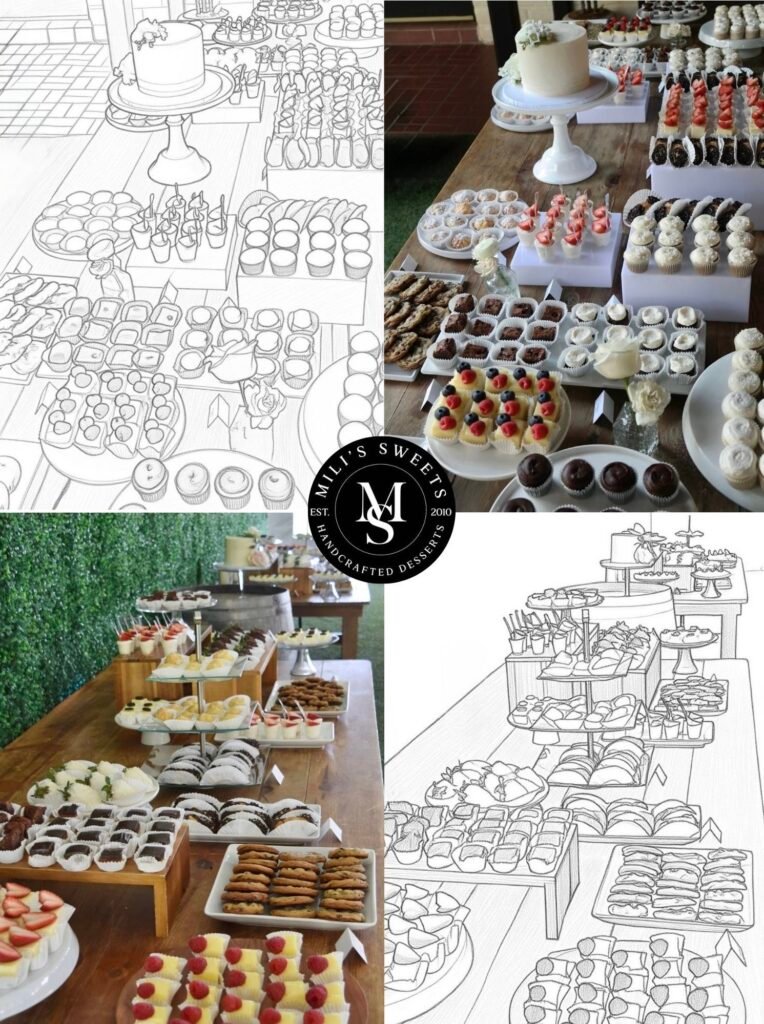 Over the hundreds of weddings and events I’ve catered DBA Mili’s Sweets, servings have ranged from a delivery with just one mini dessert per guest (at a formal, high-end wedding) to a spread we set holding seven servings per guest – at a more casual venue. It’s 100% your call, and we’re delighted to make it happen however you envision.