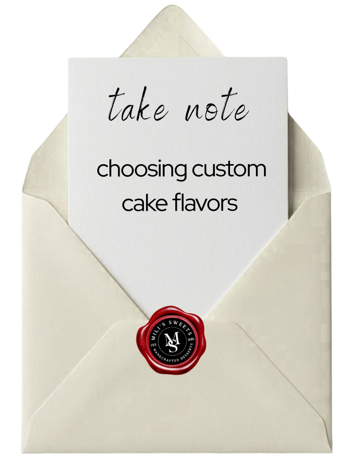 Mili’s Sweets cakes are all custom-made per client, and flat rate priced to include any flavors and outside buttercream decorating. A two-layer cake can have up to two different cake flavors and one filling option. A three-layer cake can have up to three different cake flavors, and different two filling choices.