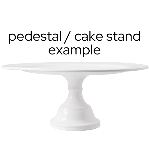 Cake Stand: See our list of cake vs. base sizing. A 12″ cake stand with a completely flat top-surface can support any of our cake sizes nicely. If your stand has a raised lip, the flat inner surface should be the same size ( or slightly larger) than the cake base for the best fit.