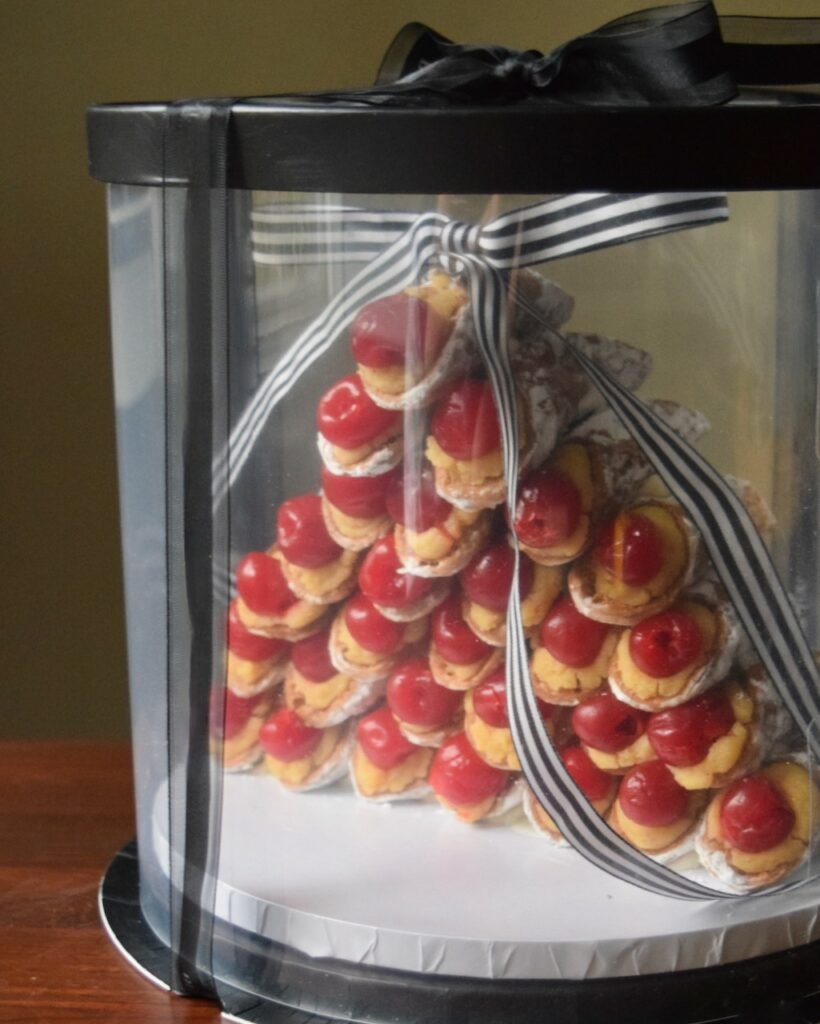 This is a new offering on our menu, created as a beautiful custom dessert display – perfect as a dessert table option, or centerpiece for weddings, showers, birthdays, or for just because gift-giving. Each tower is neatly wrapped with each serving easily separating. This dessert is best enjoyed the day of your celebration.
